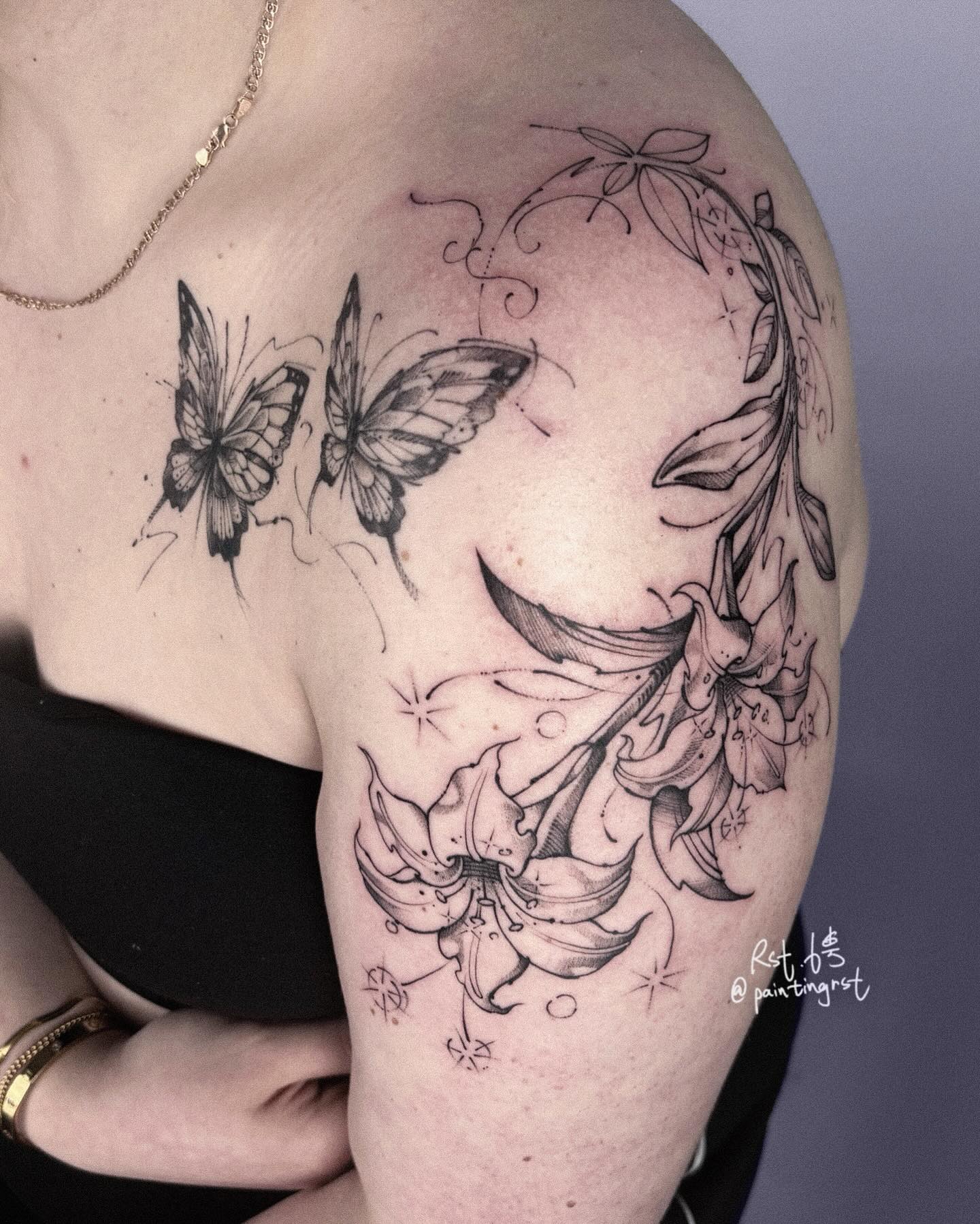 Peng’s custom tattoos are known for their artistic flow and personal touch. She collaborates closely with clients to ensure each design is meaningful and expressive, leaving them feeling happy and proud to showcase her work. Her innovative approach keeps her ahead of tattoo trends, driven by constant sketching and refining her techniques.